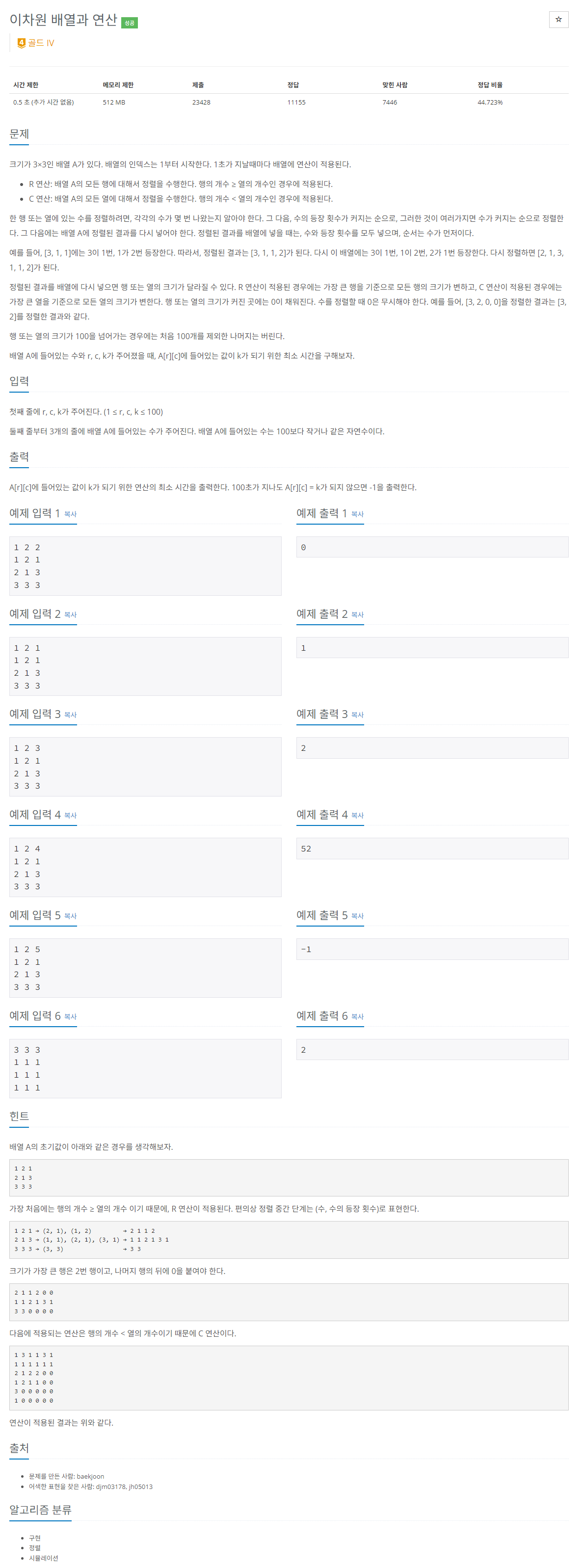 while(arr[r][c] != k && time <= 100) {